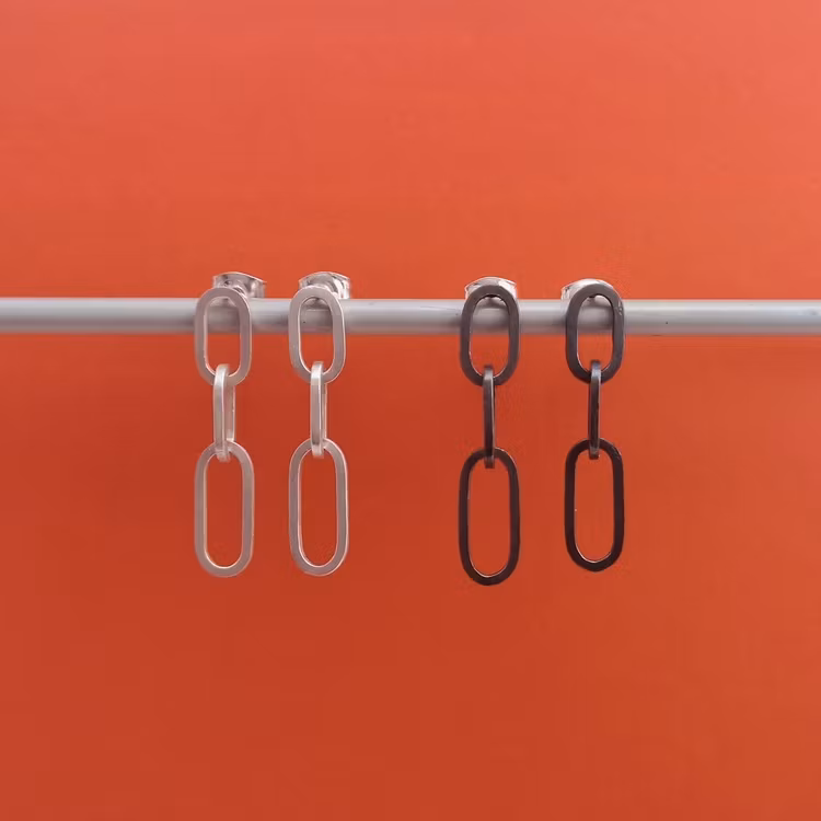 Playful earrings meticulously crafted from handmade chain links in square wire.