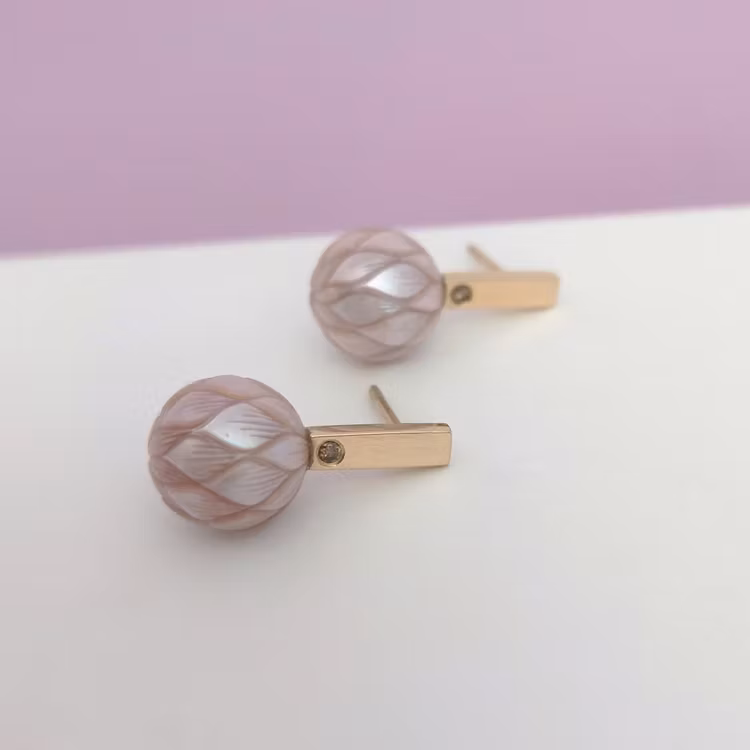 These pearls are naturally pink and carved with a petal design, giving them a little something extra!