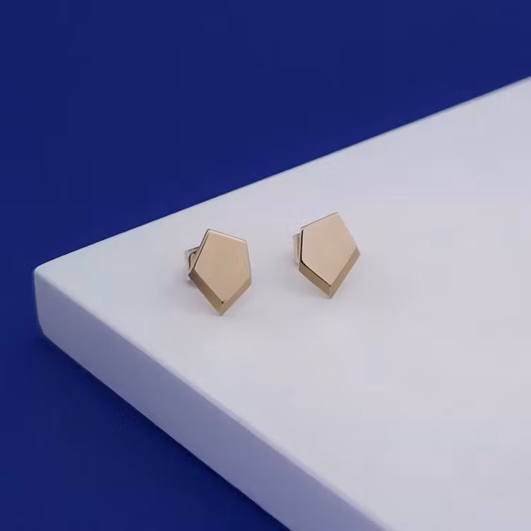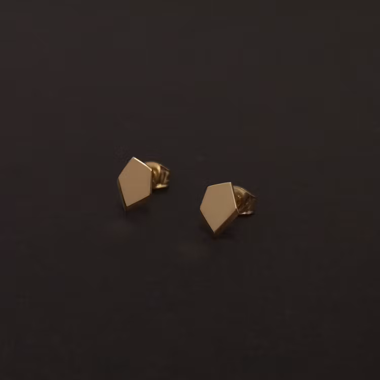 Add a little edge to your day with this simple stud earring! The faceted edge and contrasting finishes add dimension.