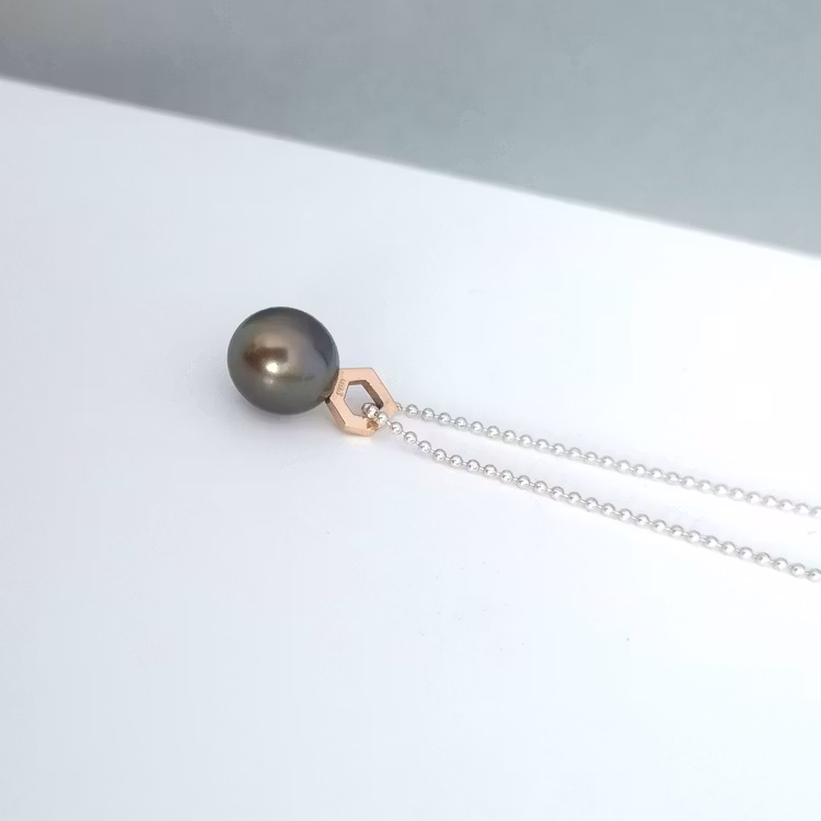 Geo Pendant in 18k Gold with Bronze Tahitian Pearl
