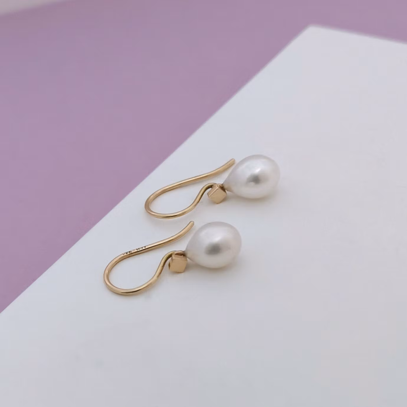 - white, drop-shaped freshwater pearls (10 x 7mm)